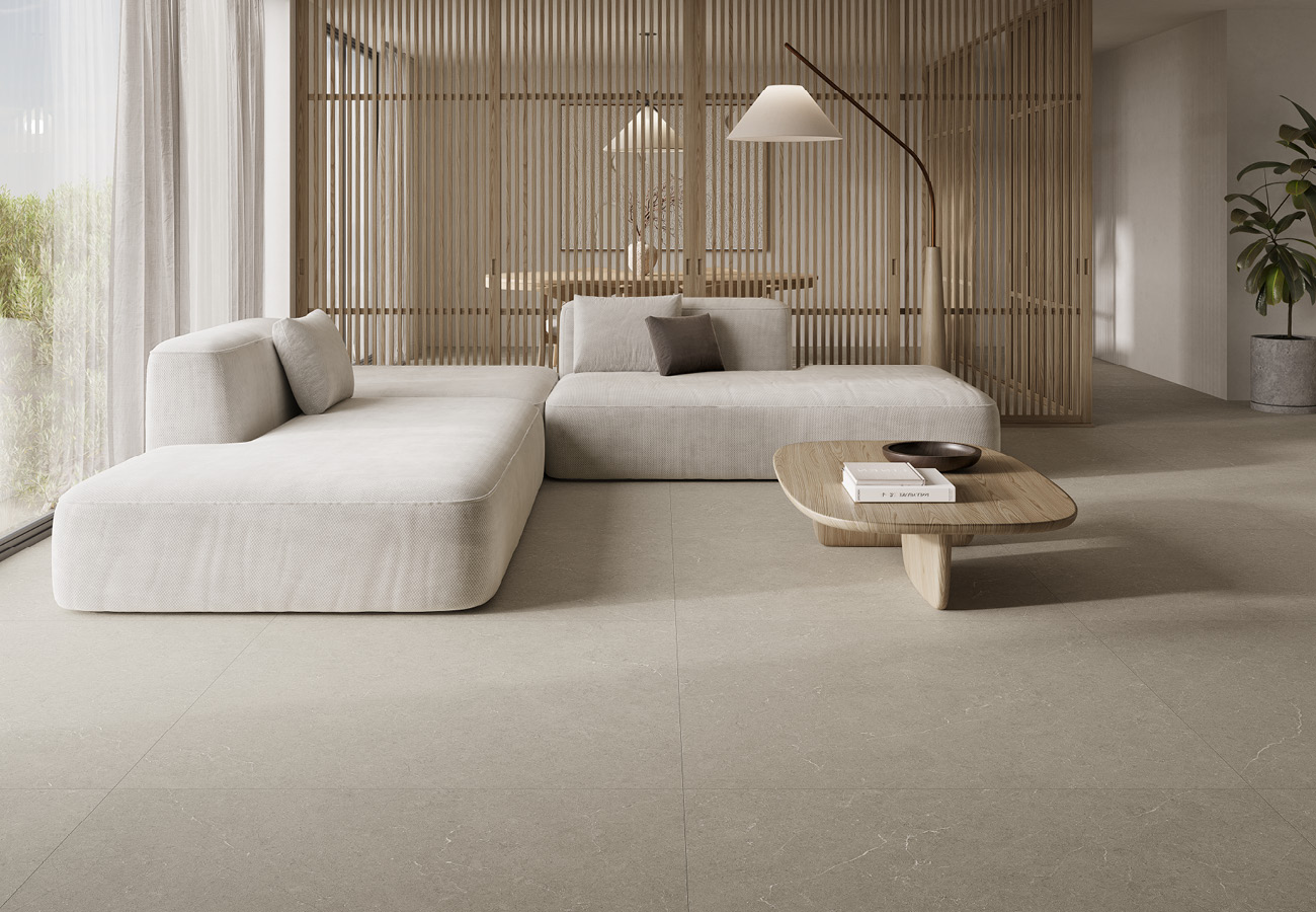 Carrelage BERGSTEIN BEIGE en grès cérame 60×120 cm à finition mate et rectifiée, inspiré de la pierre naturelle. La couleur Beige crée une ambiance authentique et équilibrée, idéale pour des sols élégants et durables dans des projets modernes ou intemporels.