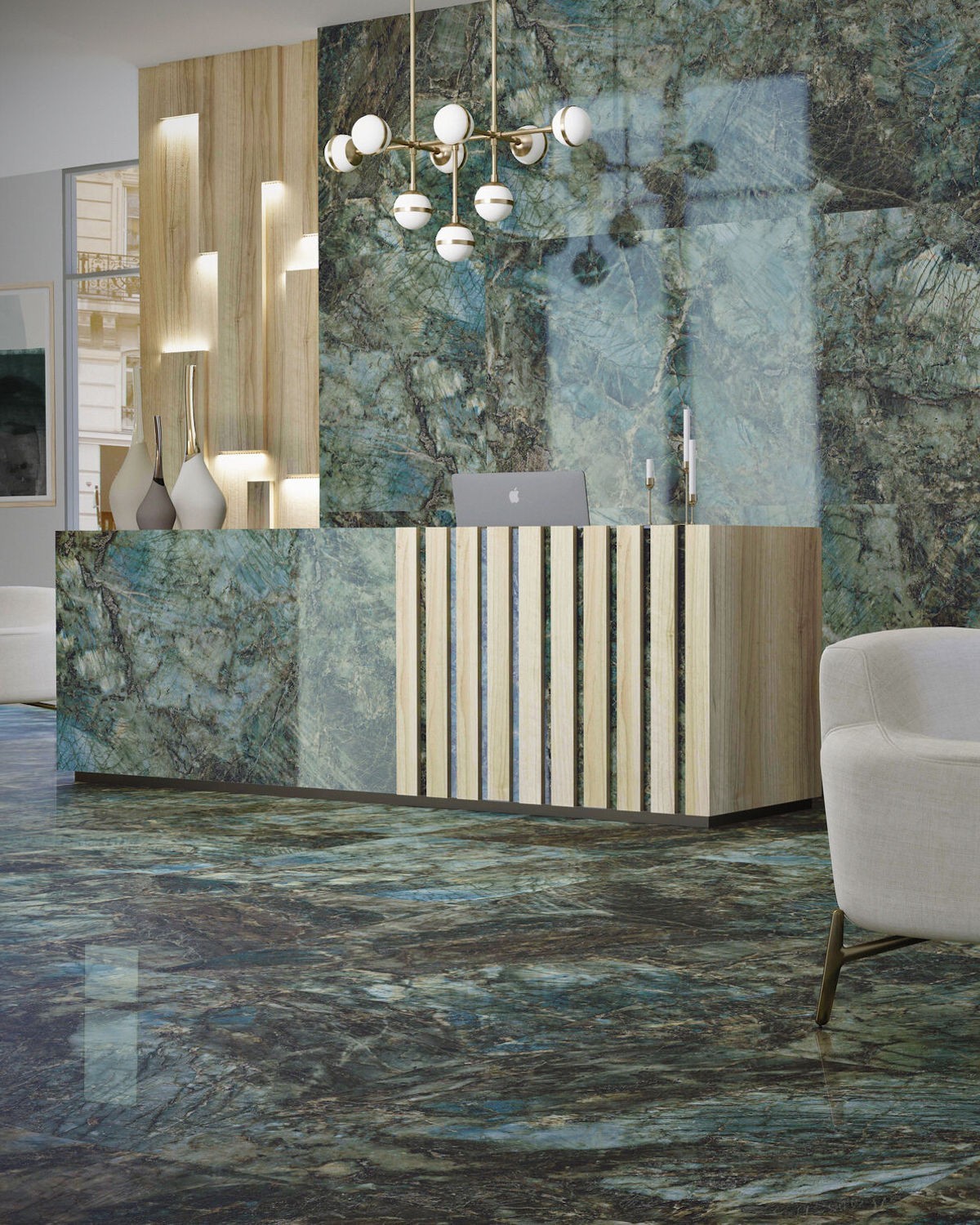 Carrelage Lemurian 60×120 offre un effet marbre vert unique. En grès cérame rectifié Pulido, il combine faible porosité, grande résistance à la casse et motifs non répétitifs pour des sols et murs intérieurs élégants et durables.